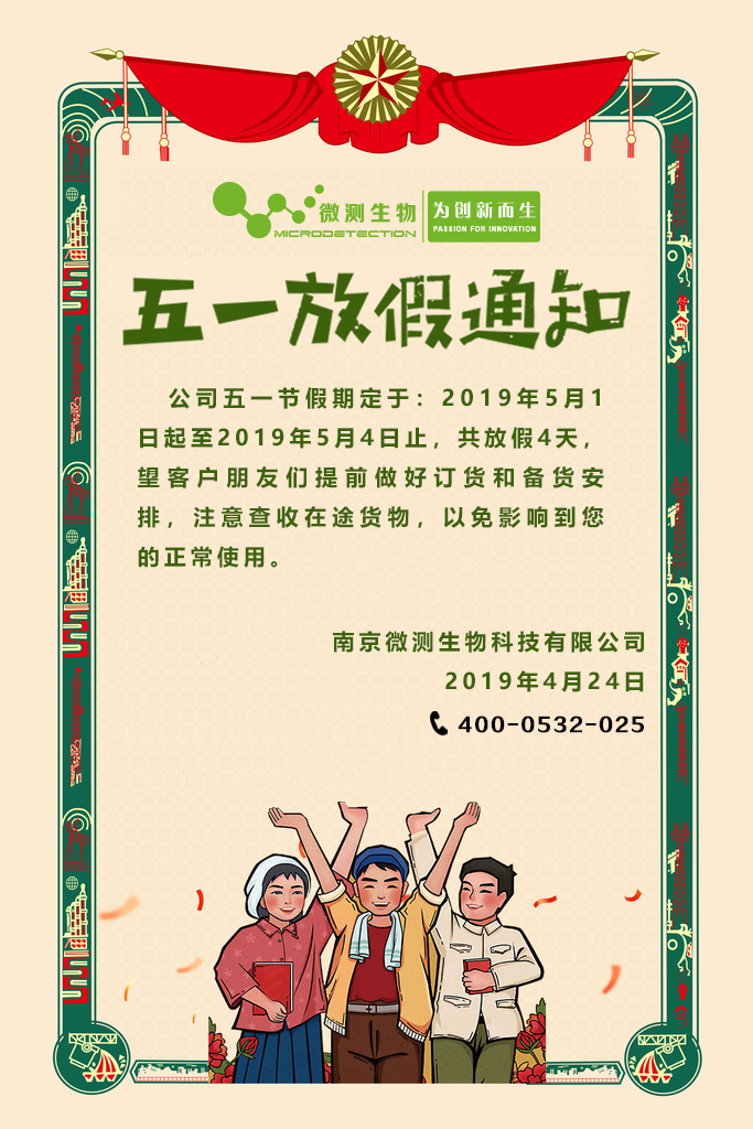 五一放假通知---南京微測生物科技有限公司