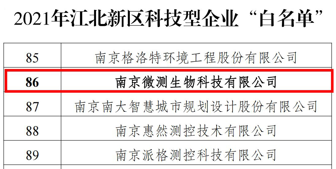 近日,根據(jù)《南京江北新區(qū)(自貿(mào)試驗區(qū))科技企業(yè)“白名單”管理辦法》,2021年江北新區(qū)科技企業(yè)“白名單”公布,138家科技領域的創(chuàng)新“尖子生”正式亮相,南京微測成功入選。